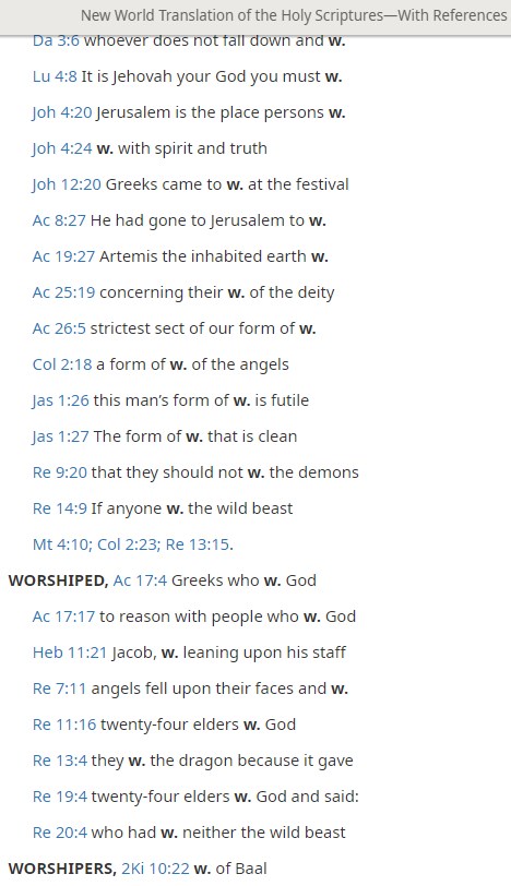 NWT: Obeisance <G4352, proskyneo> vs. Worship <G4352, proskyneo>